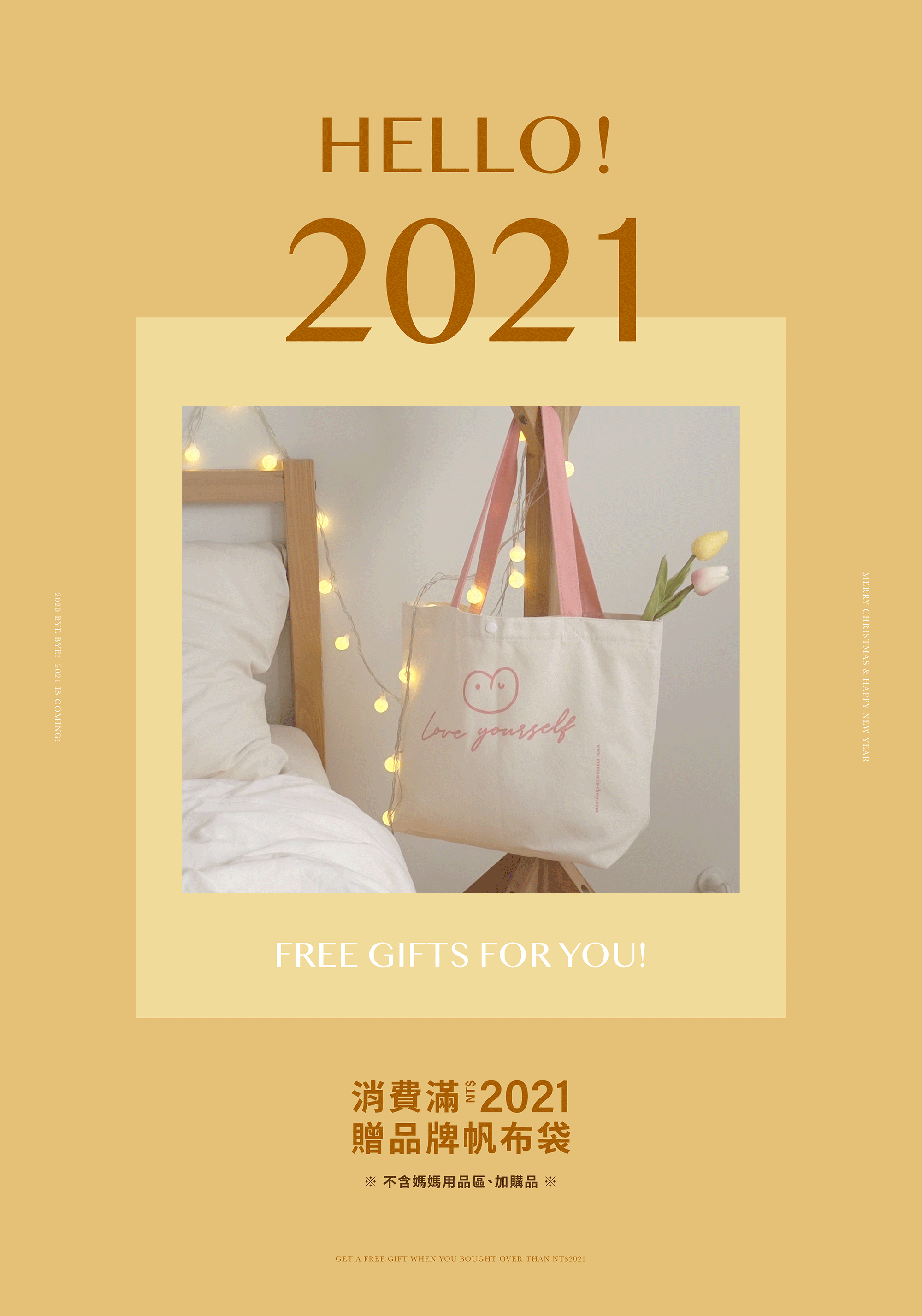 凡購買Mamamia商品,單筆訂單滿額NT$2021 即贈送【 品牌帆布袋 】乙件,恕不累計贈送。 ※ 不含媽媽用品區、加購品商品 ※